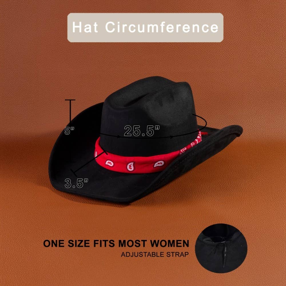 Make a bold statement, this cowboy hat offers a remarkable paisley bandana scarf strap design. Unleash the potential of your wardrobe with this versatile cowboy hat, ensuring a touch of elegance in every ensemble. This cowboy hat is made with 100% Polyester.